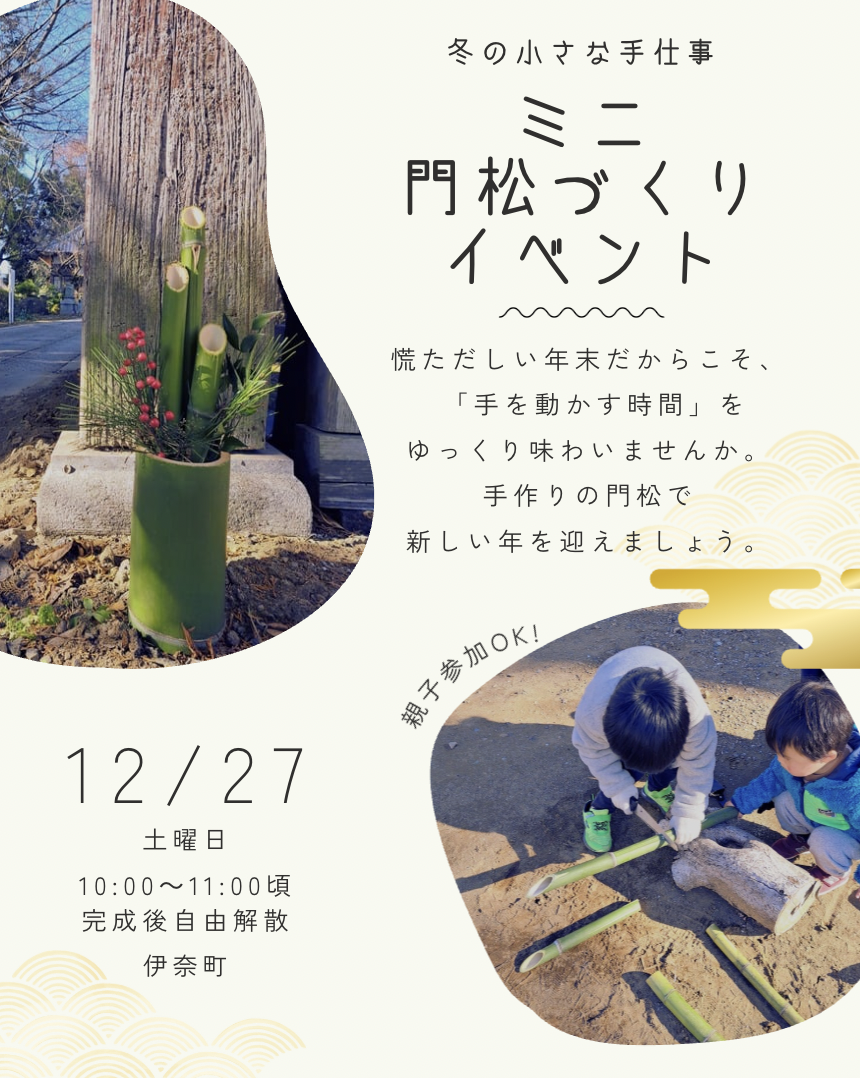 12/27(土)親子で参加できる「ミニ門松づくり」をします。